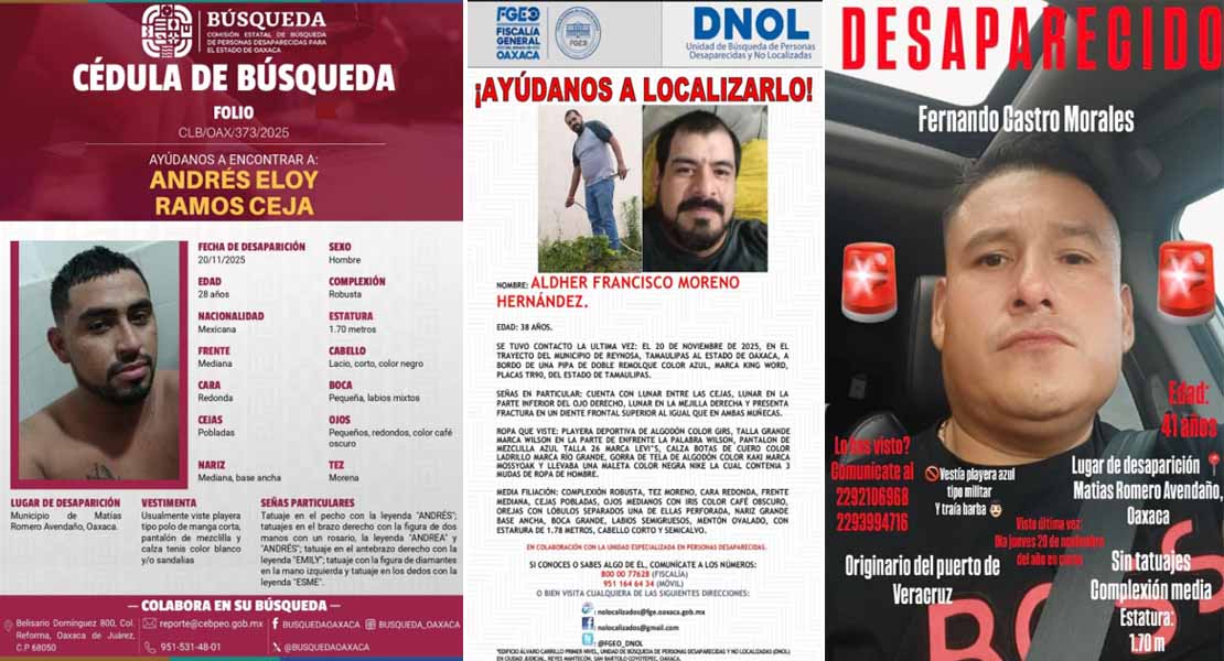 Las demás familias han reportado la desaparición ante la Comisión Estatal de Búsqueda de Personas de Oaxaca.