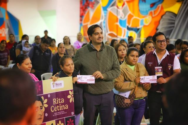 Reynosa, Tam (30-Noviembre-2025).- Una nueva entrega del apoyo histórico para estudiantes de educación media superior, «Rita Cetina», fue presidida por el Alcalde de Reynosa, Carlos Peña Ortiz y el Coordinador de Becas para el Bienestar, del Gobierno Federal, Alexander Alan Bolaños Tinoco.