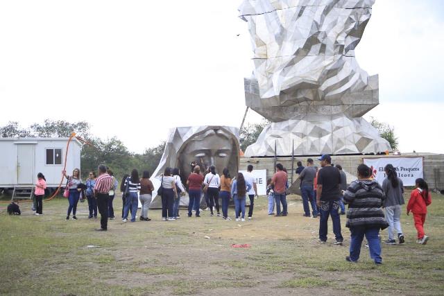 Y así como ella, se pueden apreciar a hombres y mujeres de todas las edades que han atendido la invitación para apreciar la imagen del rostro antes de que sea colocado en la parte más alta de la escultura.