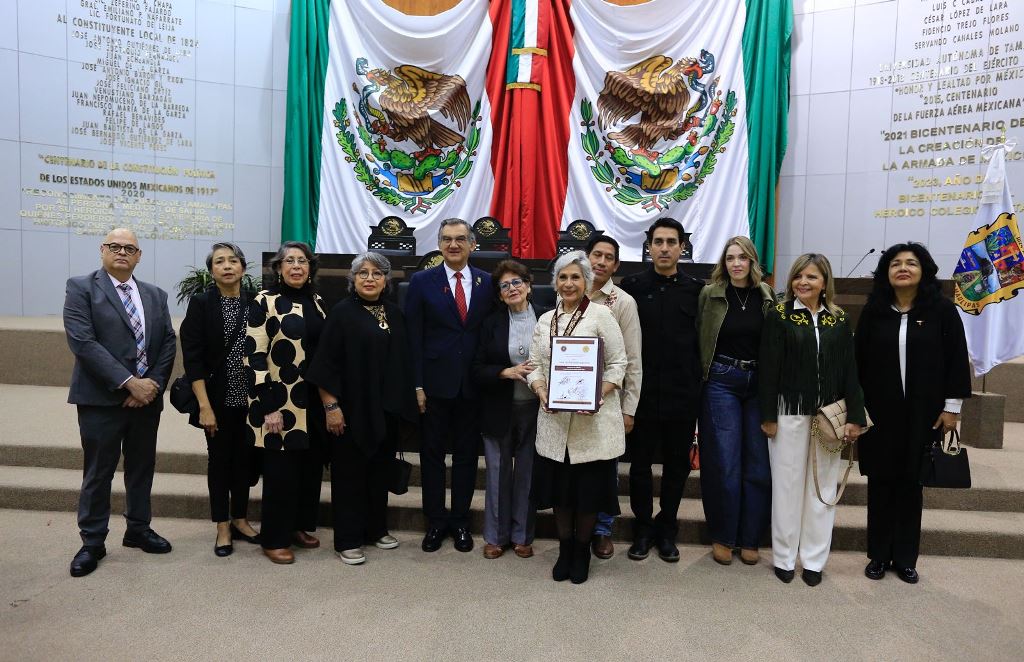 “Nos sentimos muy orgullosos de usted, de su obra, de su ejemplo, de su determinación para brillar y de llevar con usted a cada escenario, a cada aula, a cada recinto cultural, a cada estreno, la identidad y el orgullo de ser tamaulipeco”, expresó el gobernador en la ceremonia celebrada en la sede del Congreso Local.