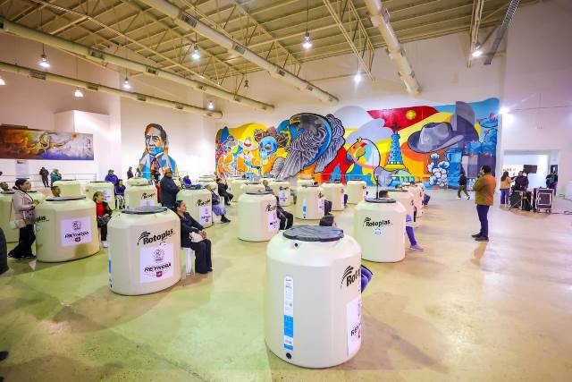 Reynosa, Tam (2-Diciembre-2025).- Mediante un programa de apoyo a la comunidad, el Presidente Municipal Carlos Peña Ortiz, hizo entrega de gratuita de Tinacos, depósitos para el almacenamiento de agua potable, con la finalidad de mejorar la infraestructura hidtraulica de centros de reunión a los que acuden ciudadanos en busca de apoyo espiritual, cumpliendo estos, una labor importante a favor de las familias vulnerables.