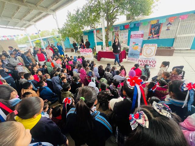 Nuevo Laredo, Tam (3-Diciembre-2025).- El Gobierno Municipal de Nuevo Laredo, a través de la Coordinación de Bibliotecas, continúa acercando la lectura a las nuevas generaciones mediante el programa Biblioteca Itinerante, una iniciativa que recorre los planteles educativos de la ciudad para fomentar este hábito con actividades dinámicas como cuentacuentos y sesiones de lectura en voz alta.