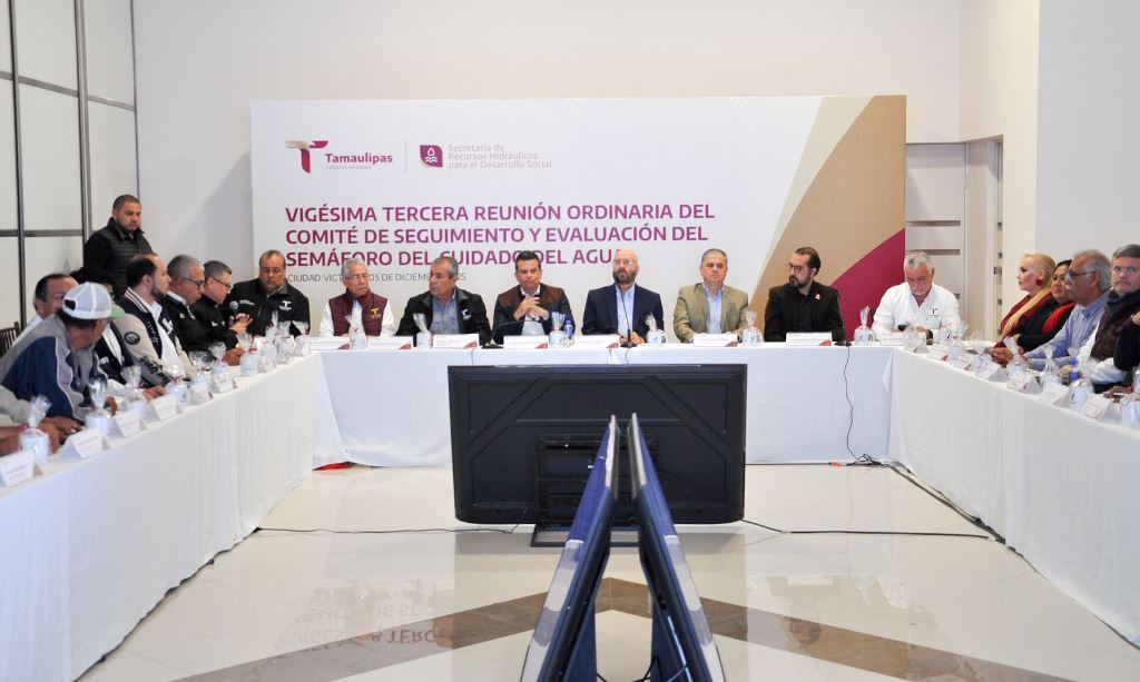 Ciudad Victoria, Tamaulipas (6-Diciembre-2025).- La Secretaría de Recursos Hidráulicos para el Desarrollo Social dio a conocer la actualización del Semáforo del Cuidado del Agua en Tamaulipas, resultado de la Tercera Vigésima Reunión Ordinaria del Comité de Seguimiento y Evaluación, encabezada por el secretario Raúl Quiroga Álvarez y el presidente municipal de Ciudad Victoria, Eduardo Gattás Báez.