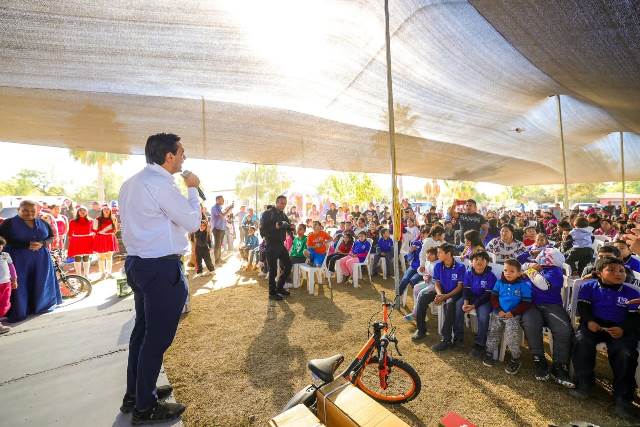 Acompañado por el Secretario de Bienestar Social Municipal, Héctor Alejandro Olivares Zavala y funcionarios del Ayuntamiento, hizo entrega mediante un sorteo, de: bicicletas, muñecas, balones y muchos más regalos que fueron repartidos entre los niños.