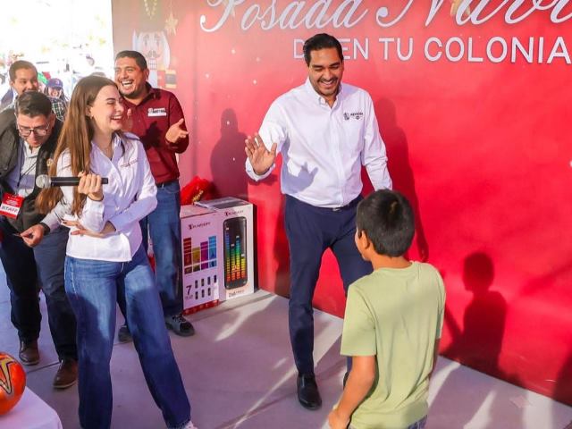 Reynosa, Tam (11-Diciembre-2025).- Más de Mil 300 familias, disfrutaron de la tradicional Posada Navideña DIF 2025 en la colonia Loma Real, la cual fue presidida por el Alcalde, Carlos Peña Ortiz y su esposa Alejandra Yelitza Garza, Presidenta del Voluntariado DIF-Reynosa, y el Presidente del Patronato del organismo, Carlos Luis Peña Garza.