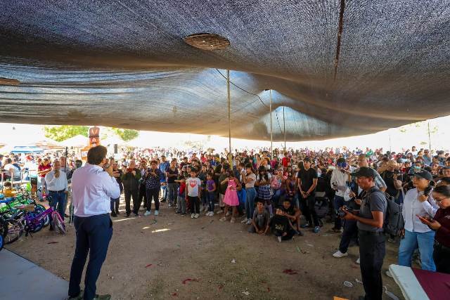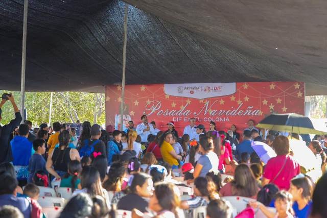 Reynosa, Tam (11-Diciembre-2025).- Una tarde llena de sonrisas y regalos vivieron más de 2,500 niños y adultos de la colonia Villas de Esmeralda, al convivir en la Posada DIF 2025 con el Alcalde Carlos Peña Ortiz, quien tuvo la oportunidad de seguir cerca de la gente, junto a su esposa Alejandra Yelitza Garza, Presidenta del Voluntariado DIF-Reynosa y al Lic. Carlos Luis Peña Garza, Presidente del Patronato del DIF.