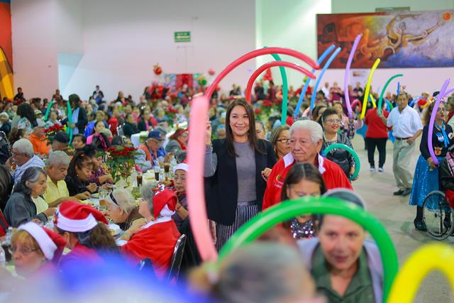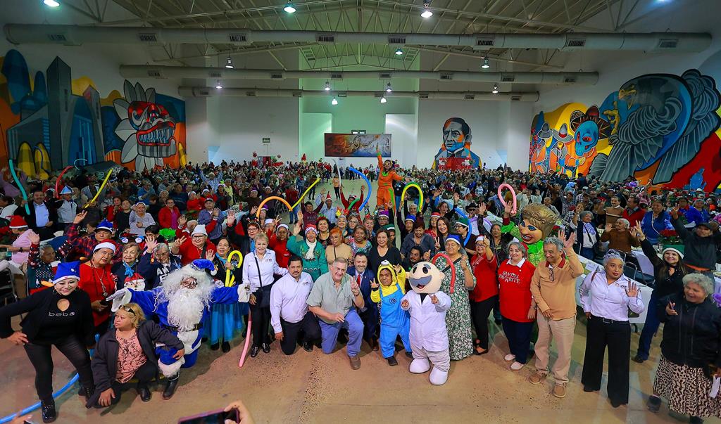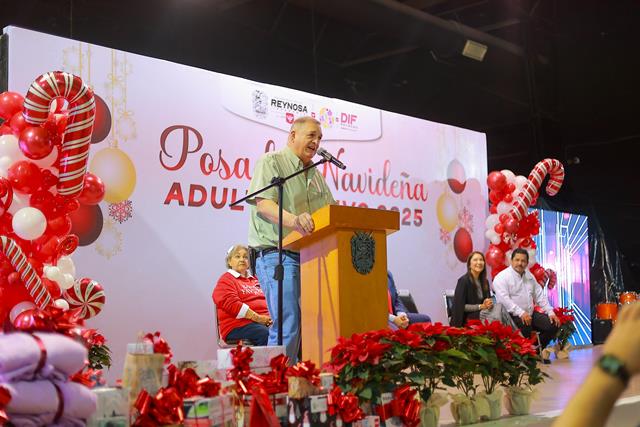 Reynosa, Tam (12-Diciembre-2025).- El Alcalde, Carlos Peña Ortiz, a través del Sistema DIF-Reynosa que preside Carlos Luis Peña Garza, llevó a cabo la tradicional Posada Navideña Adulto Activo 2025, donde más de Mil abuelitos de los programas del organismo de asistencia social, disfrutaron de música, baile, comida y muchos regalos, destacando su papel como pilar de las familias, ejemplo de entrega, fortaleza y acompañamiento para las nuevas generaciones.