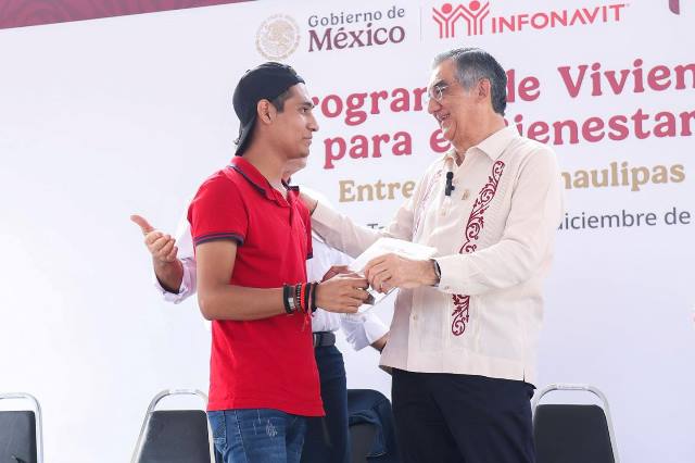 (13-Diciembre-2025).- Tamaulipas ha logrado resultados sobresalientes en el programa Vivienda para el Bienestar, gracias al apoyo del Gobernador Américo Villarreal, reconoció Octavio Romero Oropeza, Director General del Infonavit, durante la entrega de tres de las 42 viviendas en el fraccionamiento Todos por Tamaulipas.