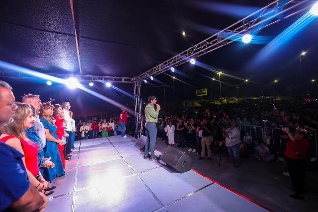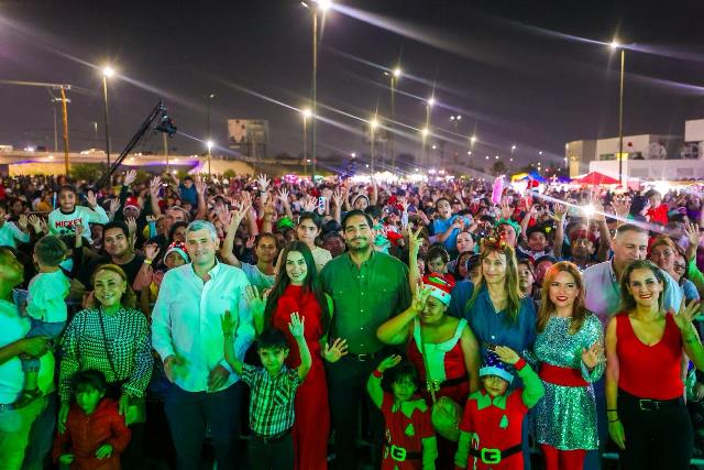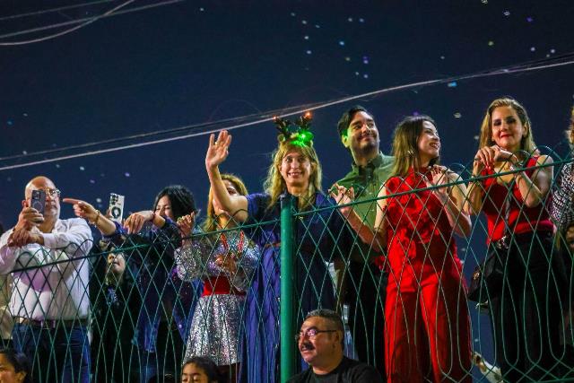 Reynosa, Tam (13-Diciembre-2025).- El Alcalde Carlos Peña Ortiz dio la bienvenida en el Polideportivo al Desfile Navideño Reynosa 2025 de Coca-Cola Arca Continental que fue apreciado por miles de reynosenses; estuvo acompañado por su esposa Alejandra Yelitza Garza, por la Senadora de la República, Maki Esther Ortiz Domínguez, por el Presidente del Patronato del DIF, Carlos Luis Peña Garza y miles de niños, jóvenes y adultos.