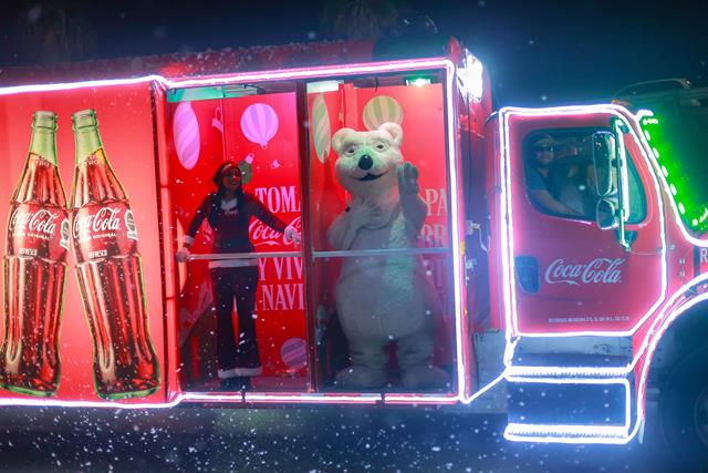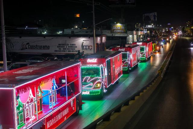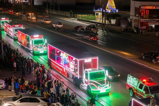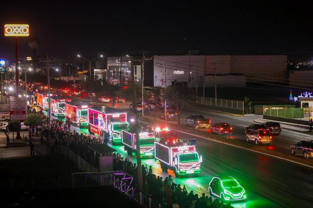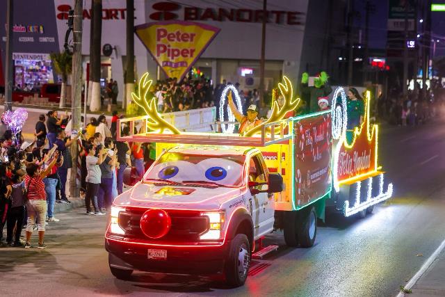 La caravana Coca-Cola, encabezada por sus personajes emblemáticos, abrió el desfile, generando un ambiente de mucha alegría y destellante emoción entre los asistentes, quienes no dudaron en lanzar vivas y aplausos a su paso por los bulevares Hidalgo y Morelos, culminando en el Polideportivo, donde se instaló un gran escenario con artistas, que ofrecieron un espectáculo musical para todos los presentes.