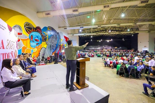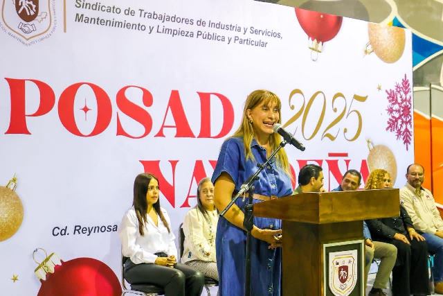 Reynosa, Tam (14-Diciembre-2025).- El Presidente Municipal Carlos Peña Ortiz, y el Sindicato de Trabajadores de Industria y Servicios, Mantenimiento y Limpieza Pública y Particular demostraron su unidad y compromiso con la comunidad en una posada navideña que reunió a los elementos de Servicios Públicos y de Servicios Generales del Ayuntamiento.