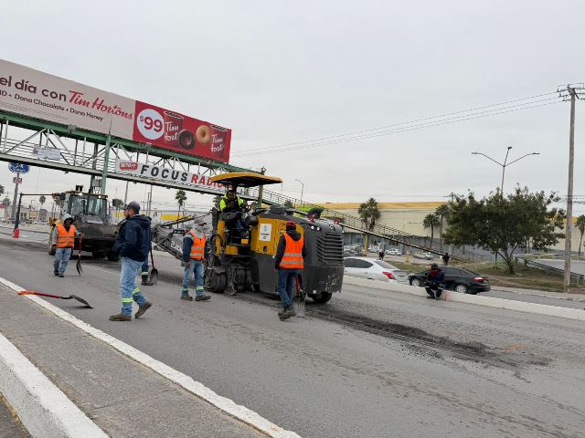 Reynosa, Tam (15-Diciembre-2025).- Maneja con precaución, Reynosa el Gobierno Municipal sigue transformando Reynosa; maquinaria y trabajadores rehabilitan el bulevar Morelos en su cruce con Álvaro Obregón y Américo Villarreal.