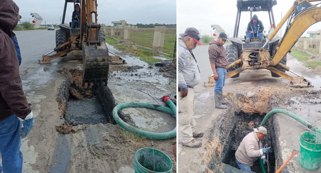Reynosa, Tam (16-Diciembre-2025).- La Comisión Municipal de Agua Potable y Alcantarillado de Reynosa lleva a cabo la reparación de una fuga de agua residual proveniente del emisor del Cárcamo 14, sobre la Carretera Reynosa–Río Bravo, con el objetivo de atender de manera oportuna la situación y evitar mayores afectaciones en la zona.