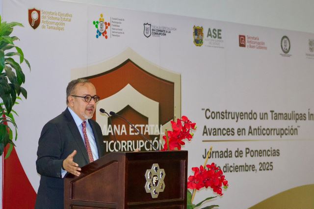 Ciudad Victoria Tamaulipas (17-Diciembre-2025).- La Secretaría Ejecutiva del Sistema Estatal Anticorrupción de Tamaulipas llevó a cabo la jornada de ponencias “Construyendo un Tamaulipas Íntegro: Avances Anticorrupción”, evento organizado y encabezado por el secretario técnico, Félix Luis Velasco Arévalo, con el propósito de fortalecer la reflexión, el intercambio de conocimientos y la actualización profesional en materia de transparencia, fiscalización y combate a la corrupción.