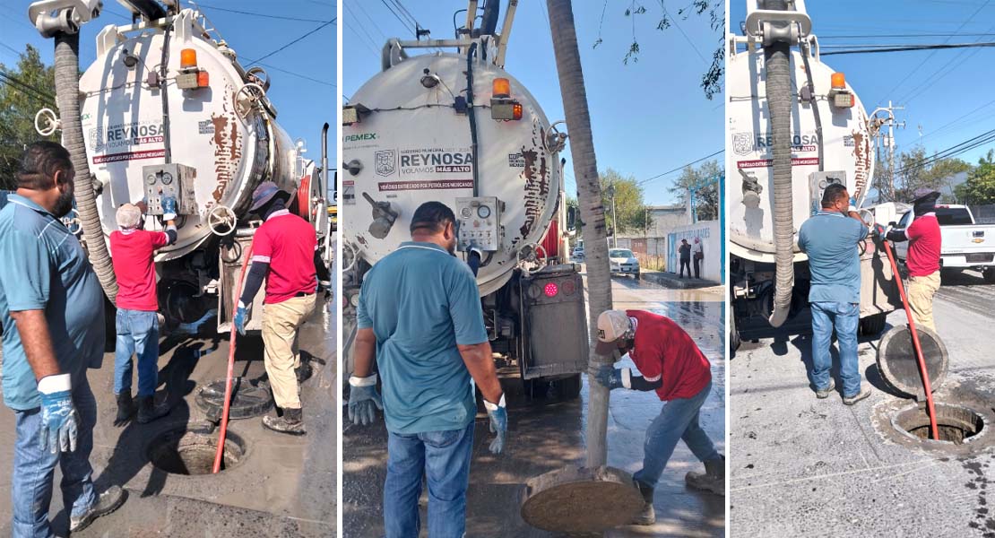Reynosa, Tam (20-Diciembre-2025).- La Comisión Municipal de Agua Potable y Alcantarillado de Reynosa trabajó en el sondeo de la línea general de drenaje sanitario en distintos puntos del fraccionamiento Reynosa, con el objetivo de mantener bajos los niveles de la red y asegurar el adecuado funcionamiento del sistema sanitario en el sector, previniendo taponamientos y posibles escurrimientos.