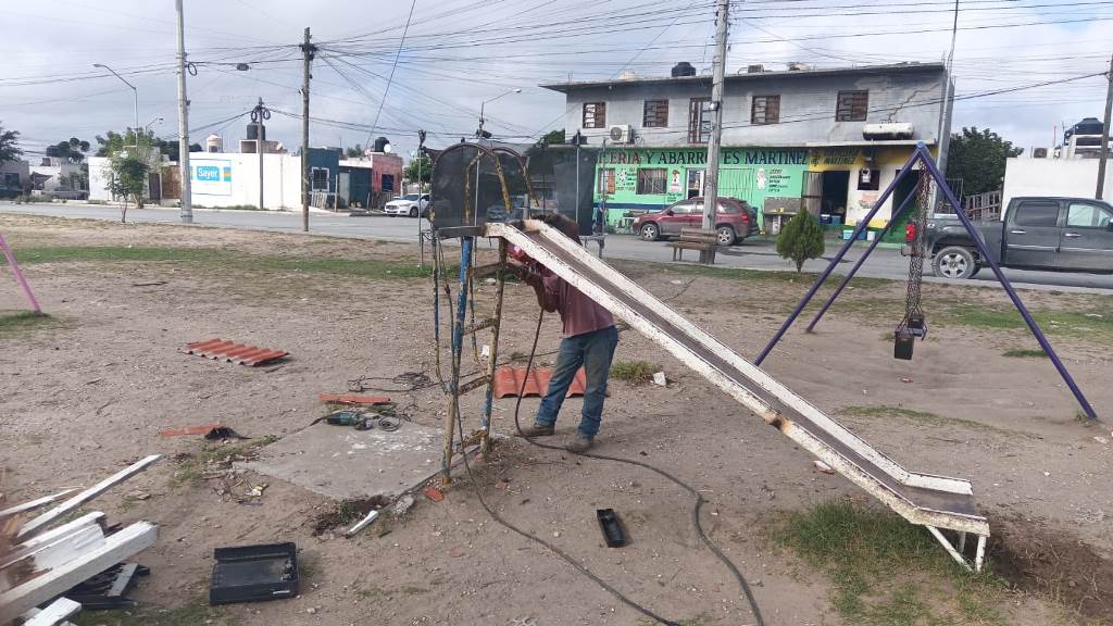 El día de hoy, martes 23 de diciembre, fueron reparados los juegos infantiles de la plaza pública del fraccionamiento Halcón, para brindar un espacio seguro y divertido para los niños de la comunidad, además, se completó la limpieza de las plazas en las colonias Valle Dorado y Puerta Sur.