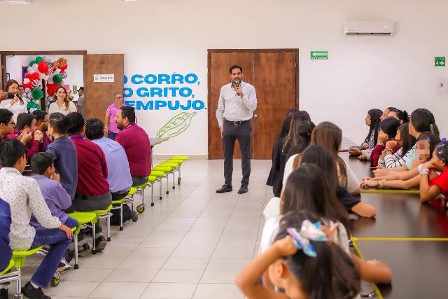 «Tenemos una sorpresa navideña para ustedes, hemos mejorado esta su casa para que se diviertan y tengan mayor comodidad», dijo el Presidente Municipal a los niños y niñas que estuvieron acompañados por representantes del Grupo Empresarial INLOSA.