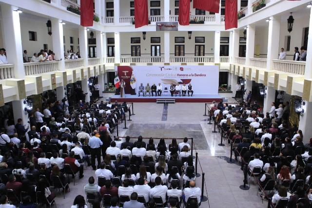 Al presidir la primera ceremonia cívica de honores del año nuevo, en la explanada de Palacio de Gobierno, el jefe del Ejecutivo estatal destacó que en Tamaulipas existen condiciones favorables para continuar nuestra transformación, aun frente a un entorno internacional en el que diferencias y divisiones políticas antagónicas han sembrado discordia e incertidumbre, generando hostilidades que han rebasado el terreno de la diplomacia, causando sufrimientos a millones de personas y familias que son arrastradas a conflictos de orden geopolítico, contrarios al derecho, a la razón y a la empatía que debe existir entre semejantes.
