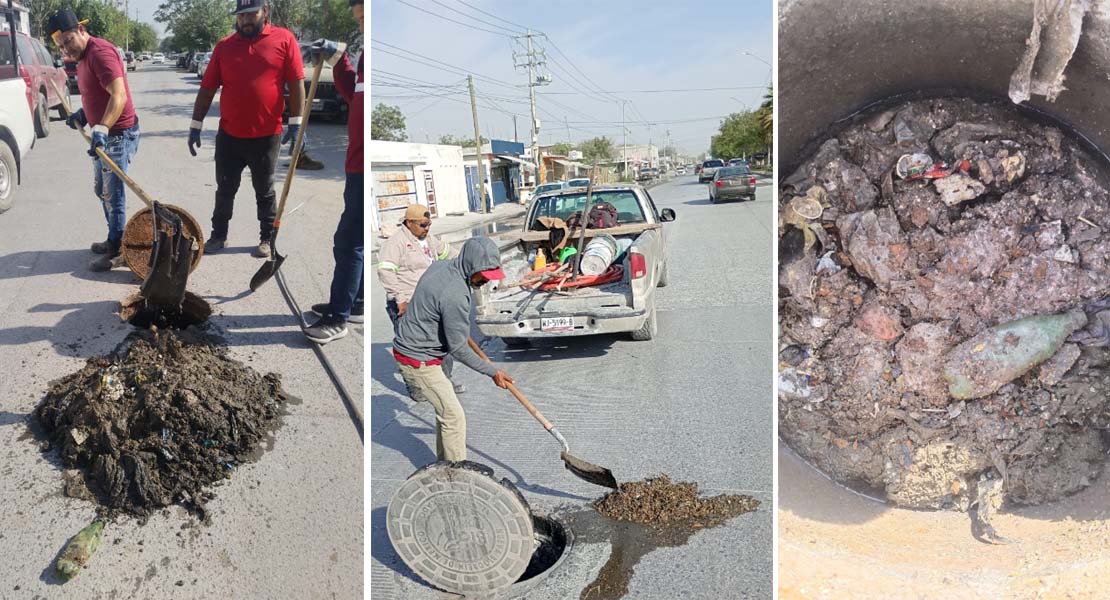 Reynosa, Tam (9-Enero-2026).- COMAPA de Reynosa continúa con los trabajos de limpieza de pozos de visita en distintos puntos de la ciudad, donde se ha detectado una considerable acumulación de basura, desechos sólidos, grasas y otros residuos que afectan el correcto funcionamiento de la red de drenaje.