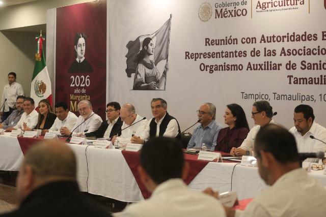Durante una reunión con presidentas y presidentes municipales, titulares de asociaciones ganaderas, la dirigencia de la Unión Ganadera Regional de Tamaulipas y productores ganaderos, el gobernador del estado reiteró todo su apoyo a la estrategia y destacó la inmediata respuesta de la presidenta Claudia Sheinbaum para respaldar al sector ganadero de la entidad.