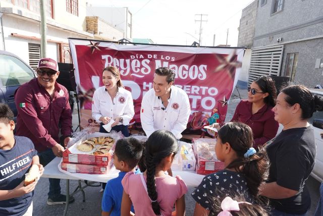 Reynosa, Tam (10-Enero-2026).- Durante este sábado 10 de enero, el presidente de la Junta de Gobierno, Humberto Prieto Herrera, acompañado de su esposa Verónica Garza, asistió al último de varios convivios con familias de Reynosa, en el marco de la celebración de la partida de rosca por el Día de Reyes Magos.