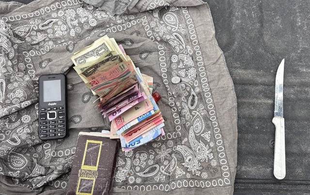Durante la revisión, le fueron asegurados cinco mil pesos en efectivo, un cuchillo con mango blanco y un teléfono celular color negro.