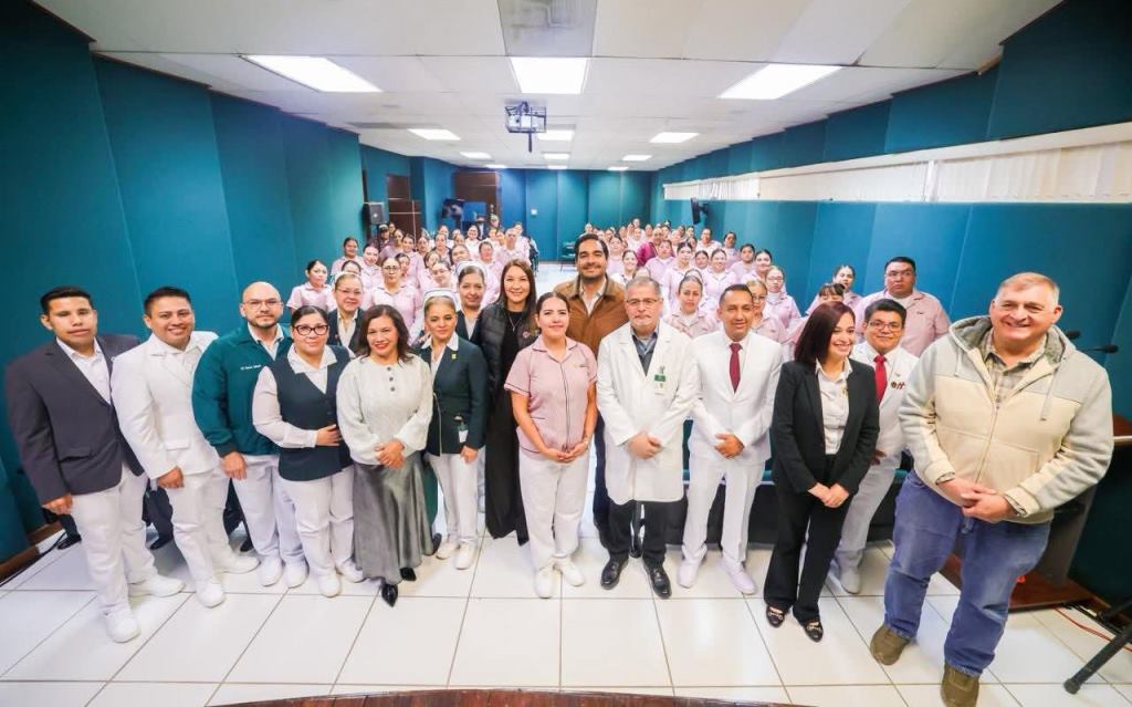 Reynosa, Tam (14-Enero-2026).- El Presidente Municipal Carlos Peña Ortiz, dio un discurso para el inicio de las Prácticas Hospitalarias de más de 70 alumnos de Enfermería de los Centros CEDIF Hidalgo y Jarachina, en el Hospital General de Reynosa, HGR, con el Subdirector Felipe Alcalá Espinosa, y el Presidente del Patronato del DIF-Reynosa, Carlos Luis Peña Garza.