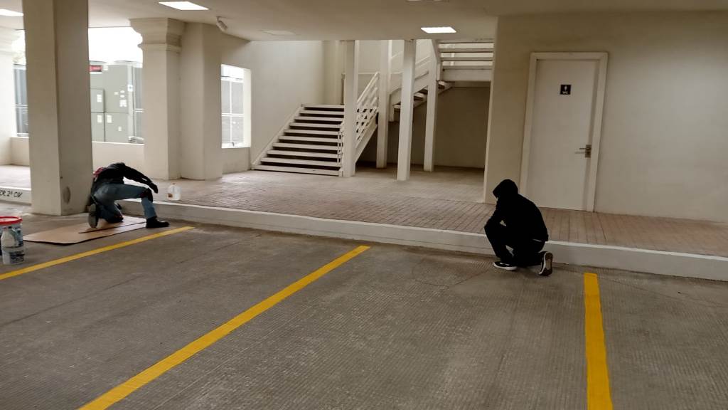 – Trabajo de pintura y rotulación en estacionamiento en el Poder Judicial de Tamaulipas.