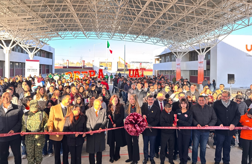 La entrega, realizada en el marco de apertura del ciclo escolar 2026-1 de la UAT, incluyó la techumbre monumental, diseñada para proteger a los estudiantes de las inclemencias del tiempo durante sus actividades al aire libre; así como el estacionamiento, destinado a mejorar la movilidad y el orden dentro del plantel.