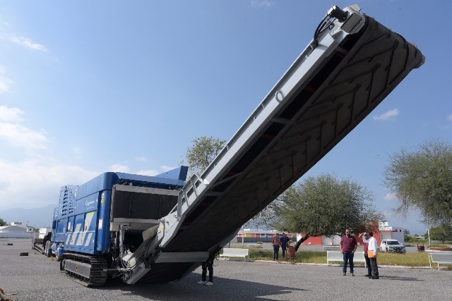 La maquinaria adquirida, de origen alemán, cuenta con tecnología de última generación y una capacidad de trituración de entre 10 y 12 toneladas por hora. Está equipada con sistema de oruga que permite su desplazamiento en distintos tipos de terreno, así como con una banda transportadora de 25 metros de longitud, lo que facilita su operación en diversos puntos del estado sin necesidad de trasladar los residuos a un solo sitio.