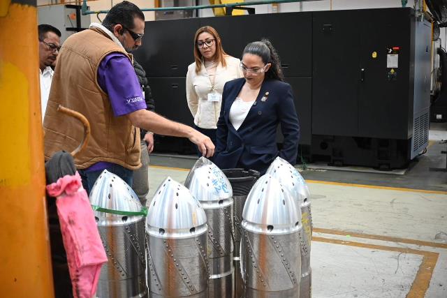 Matamoros, Tam (22-Enero-2026).- Durante el recorrido por la maquila Varel, empresa dedicada a la manufactura de barrenas de perforación para la industria petrolera y minera, la senadora de la república por Tamaulipas Olga Sosa Ruíz destacó la confianza depositada por el corporativo en la mano de obra calificada en Matamoros integrada por soldadores y operadores CNC, que han permitido tener certificaciones laborales garantizando las condiciones de seguridad en el trabajo.
