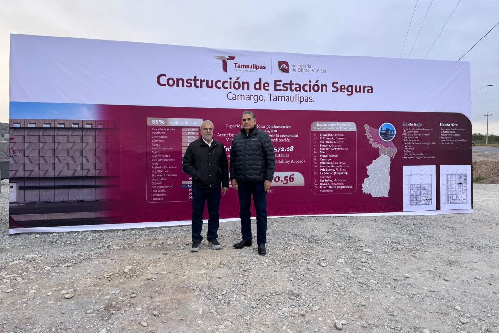 Camargo, Tamaulipas (25-Enero-2026).- Como parte del compromiso institucional de fortalecer la infraestructura en materia de seguridad pública, el secretario de Seguridad Pública de Tamaulipas, Carlos Arturo Pancardo Escudero, supervisó la construcción de las Estaciones Seguras que se desarrollan en la zona fronteriza del estado.