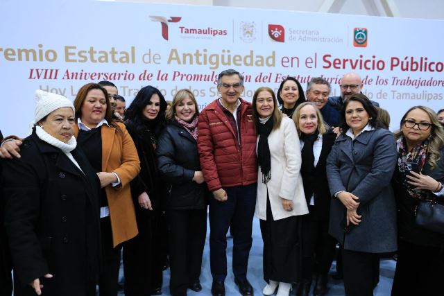 En esta ceremonia, recibieron de manera especial su reconocimiento por 50 años de servicio: Gerardo Salinas Trejo, de la Secretaría de Finanzas, y David González Delgado, de la Secretaría de Administración, mientras que Gerarda Pelcastre, de la Secretaría de Administración, fue galardonada por cumplir 55 años de servicio en el Gobierno de Tamaulipas.