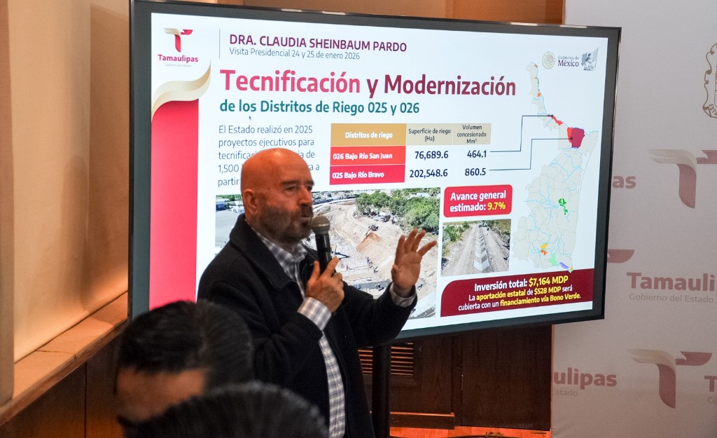 En materia de riego agrícola, el secretario informó que se destinan más de 6,000 millones de pesos para la tecnificación y modernización de los distritos de riego 025 y 026, así como para el revestimiento de canales y el mejoramiento y conservación de la red de drenaje.