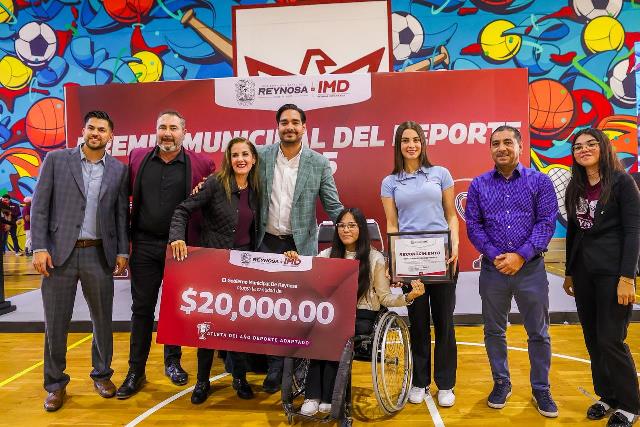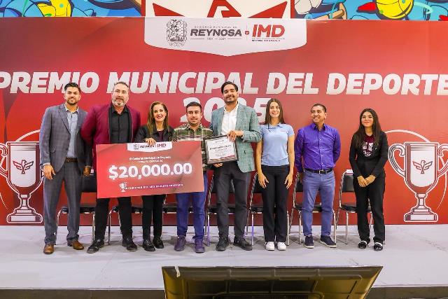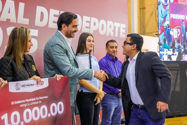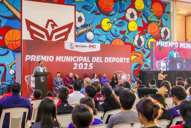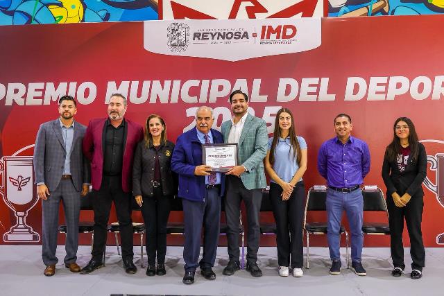 Reynosa, Tam (29-Enero-2026).- El Alcalde Carlos Peña Ortiz entregó esta tarde el Premio Municipal del Deporte y Premio al Periodismo Deportivo 2025, un galardón que reconoce el esfuerzo, la dedicación, disciplina y honor de los atletas reynosenses y de los periodistas de la ciudad, evento que presidió acompañado por su esposa Alejandra Yelitza Garza, por la Diputada Federal Claudia Alejandra Hernández Sáenz y por el Director del Instituto Municipal del Deporte, Saúl Soto Castro.