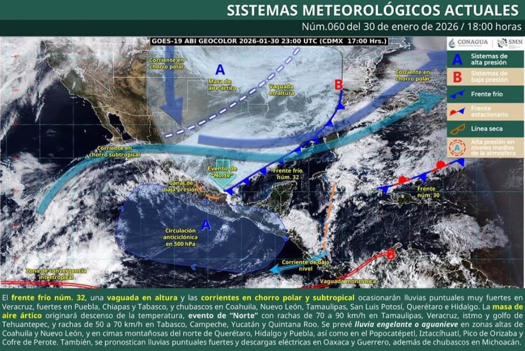Reynosa, Tam (30-Enero-2026).- Información del pronóstico del clima indica que hoy viernes 30 de enero la temperatura podrá descender hasta cerca de los 10° Centígrados con alta probabilidad de lluvia y por la madrugada del sábado 31 hasta 6°, día en que la máxima estaría en los 19° Grados Celsius o Centígrados.