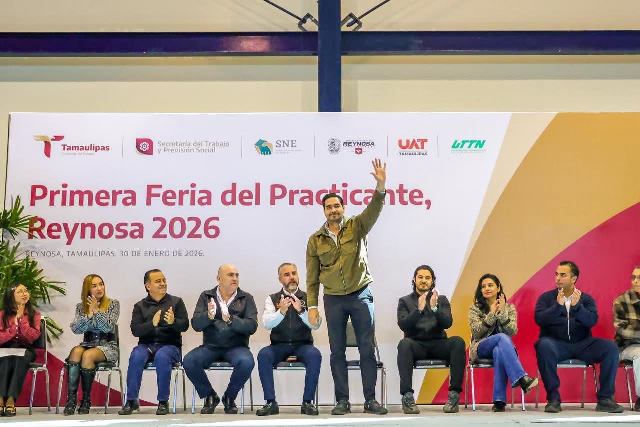 Reynosa, Tam (31-Enero-2026).- Al inaugurar el Presidente Municipal Carlos Peña Ortiz, con el Secretario de Trabajo y Previsión Social de Tamaulipas, Luis Gerardo Illoldi Reyes, la «Primera Feria del Practicante Reynosa 2026», invitó a los jóvenes estudiantes a seguir preparándose, «nosotros queremos que sean muy exitosos porque hoy México tiene muchas carencias, pero si a ustedes les va bien a toda la sociedad le va a ir mejor».