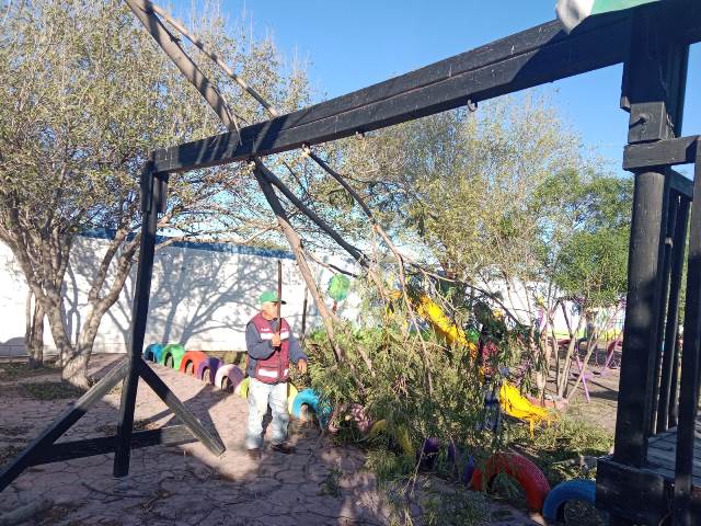 Reynosa, Tam (2-Febrero-2026).- En un esfuerzo por garantizar espacios dignos y seguros para los estudiantes reynosenses, el Alcalde Carlos Peña Ortiz programó con la Secretaría de Servicios Públicos la limpieza y poda de árboles en el jardín de niños Emma Vásquez, ubicado en la colonia Lomas Real de Jarachina Sur.