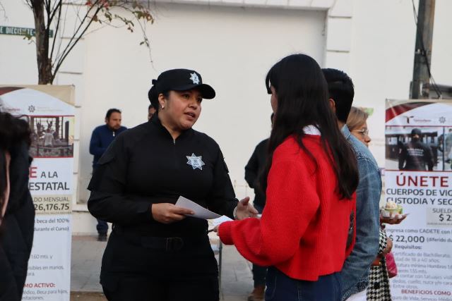 Asimismo, se instaló un módulo de reclutamiento para invitar a la ciudadanía interesada a incorporarse a la Guardia Estatal, promoviendo la participación social y el fortalecimiento institucional.