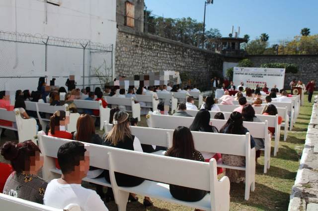 La ceremonia de matrimonios colectivos fue posible gracias a la sinergia entre la Secretaría de Seguridad Pública de Tamaulipas (SSPT), el Sistema DIF Victoria, la Dirección de Oficialías del Registro Civil y el Instituto de las Mujeres en Tamaulipas, y consistió en el enlace legal de 11 parejas integradas por PPLs y 10 entre residentes del CEDES Victoria y personas externas.