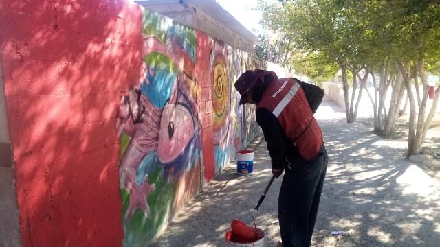 Aplicación de pintura vinílica en barda perimetral de la escuela primaria Juan José de la Garza