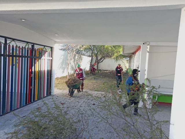 Limpieza y corte de maleza en jardín de niños Teodosia Martínez de Armas