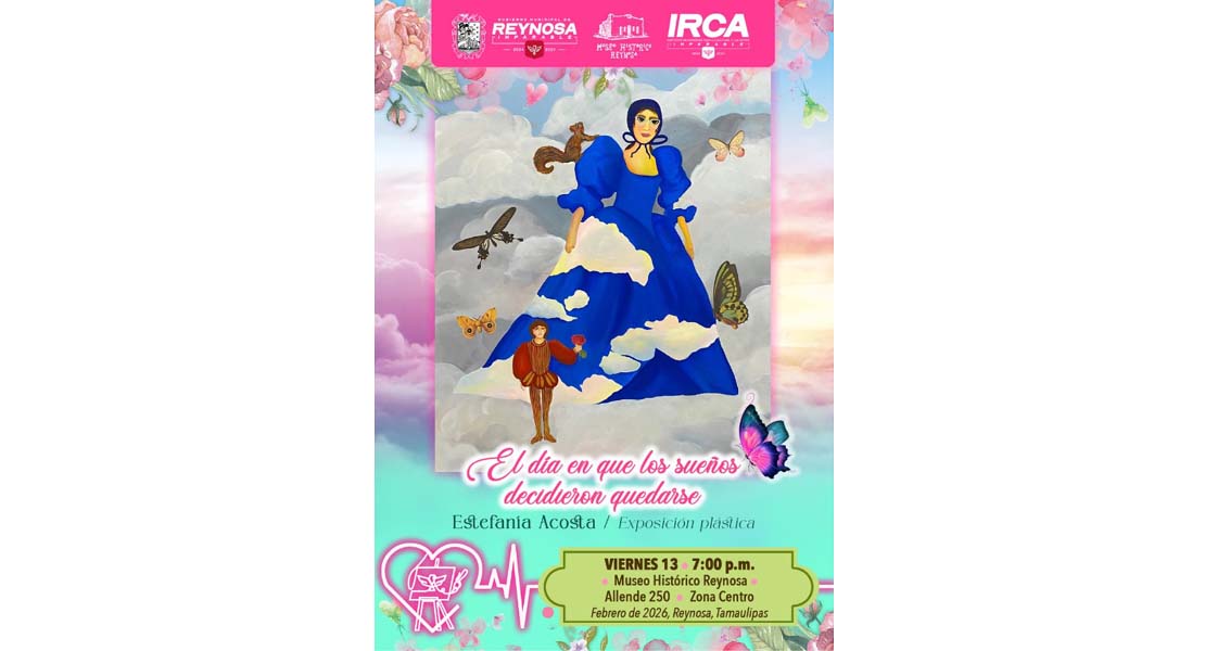 Reynosa, Tam (10-Febrero-2026).- El Gobierno de Reynosa, que preside el Alcalde Carlos Peña Ortiz, invita a la inauguración de la exposición pictórica «El día en que los sueños decidieron quedarse», de la artista Estefanía Acosta Franco, este próximo viernes 13 de febrero a las 19:00 horas en el Museo Histórico Reynosa.