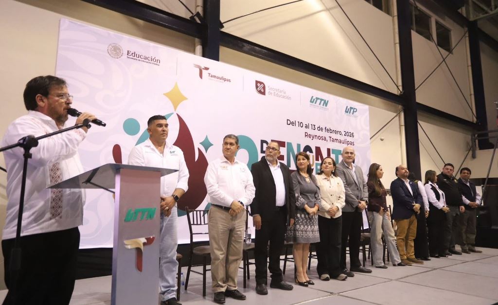 Reynosa, Tamaulipas (11-Febrero-2026).- El secretario de Educación de Tamaulipas, Miguel Ángel Valdez García, inauguró el Segundo Encuentro Regional Deportivo y Cultural de las Universidades Tecnológicas y Politécnicas (UTyP), teniendo como sede el Gimnasio Multidisciplinario de la Universidad Autónoma de Tamaulipas.