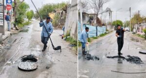 Atendió COMAPA limpieza de pozos de visita en la colonia Ferrocarril Poniente