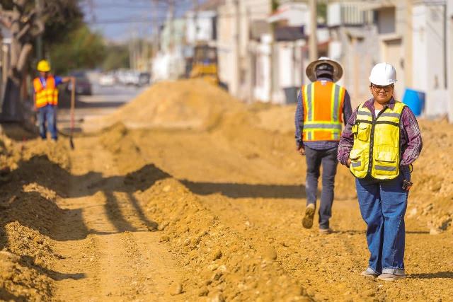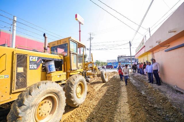 Reynosa, Tam (14-Febrero-2026).- El Presidente Municipal Carlos Peña Ortiz supervisó el avance en la construcción de la pavimentación de la calle Nuevo Laredo en la colonia Revolución Obrera, a donde acudió acompañado por funcionarios municipales y de la COMAPA.