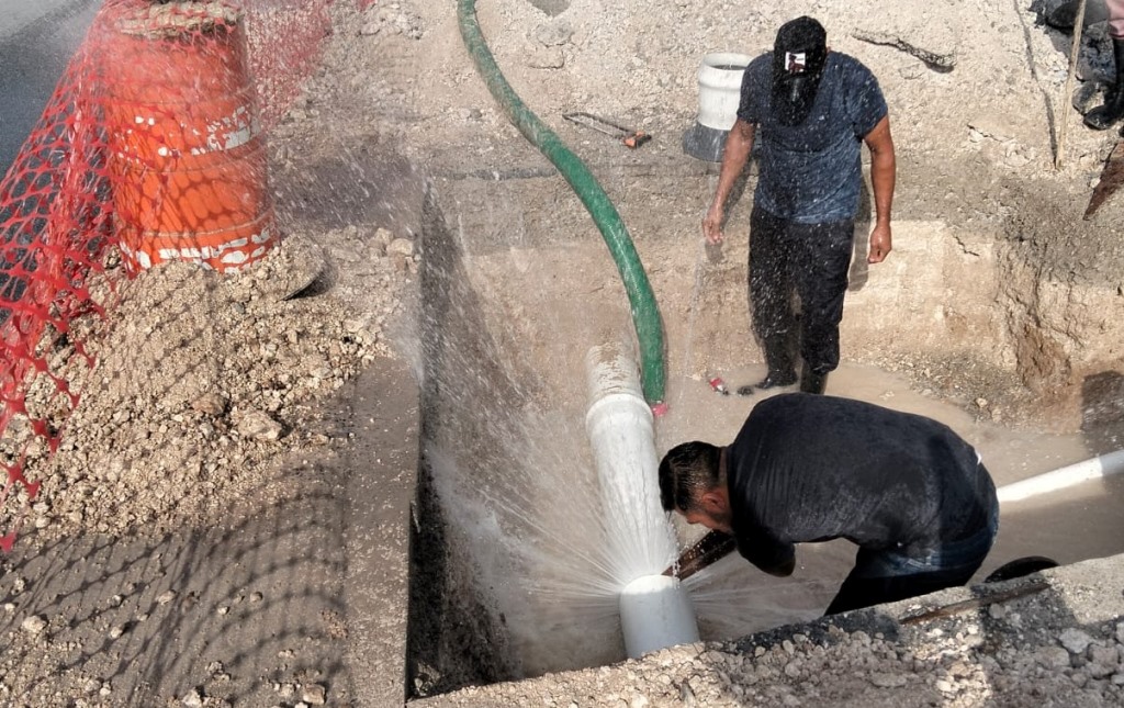 Cuadrillas del organismo llevaron a cabo la interconexión de tubería de 8 a 3 pulgadas en el fraccionamiento Punta Norte, con el objetivo de optimizar la distribución del agua potable y mejorar el suministro para las familias del sector.