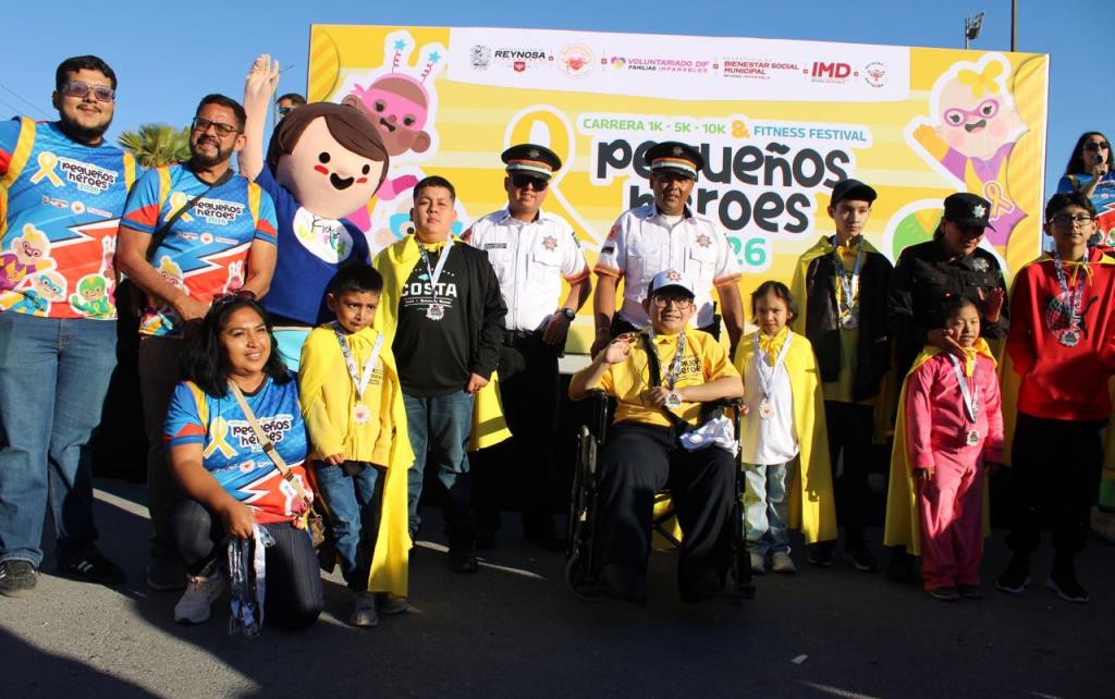 Reynosa, Tamaulipas (15-Febrero-2026).- En el marco del Día Internacional contra el Cáncer Infantil, personal de la Guardia Estatal y Dirección de Tránsito Estatal de la Secretaría de Seguridad Pública de Tamaulipas (SSPT) convivieron con familias reynosenses en la carrera “Pequeños Héroes” 2026.