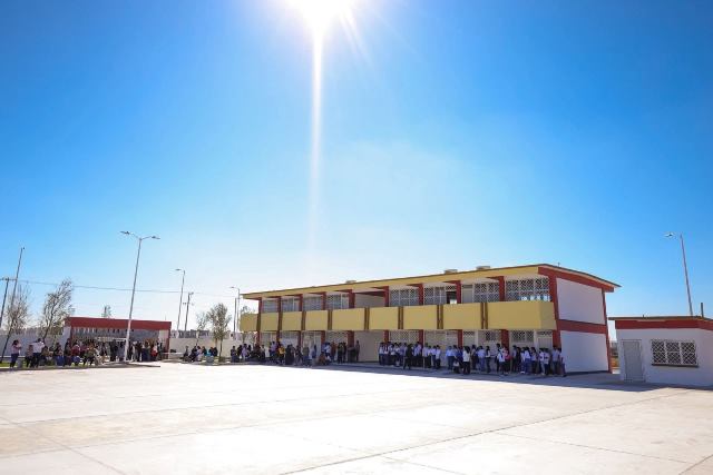 Reynosa, Tam (17-Febrero-2026).- El Presidente Municipal Carlos Peña Ortiz entregó a la comunidad del sur de Reynosa, la nueva Secundaria General número 17 en el fraccionamiento Pirámides, fruto de una gran sinergia y esfuerzo de los Gobiernos Estatal, Municipal y de la empresa JAVER, desarolladora del conjunto habitacional, donde la primera piedra para la construcción de la institución fue colocada con el Secretario de Educación de Tamaulipas, Doctor Miguel Ángel Valdez García, representado hoy por la Maestra Sylvia Isabel Martínez Guerra, Subsecretaria de Planeación.