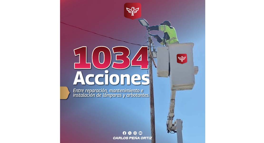 Reynosa, Tam (20-Febrero-2026).- El Gobierno Municipal que preside Carlos Peña Ortiz está transformando a Reynosa, en la última semana fueron ejecutadas 1,034 acciones de alumbrado público, instalación de nuevas luminarias, así como reparación y mantenimiento de arbotantes y lámparas en distintas colonias.